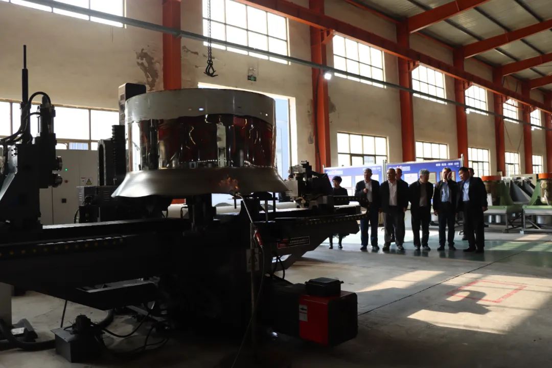 吴总带领大家参观了加工车间,向大家介绍了风机不锈钢外壳的一次性旋压成型工艺,以及不锈钢喷淋管的加工工艺及产品特点。通过这次参观大家充分见证了金信的规模实力,以及在纺织空调数字化转型方面的核心技术技术优势。